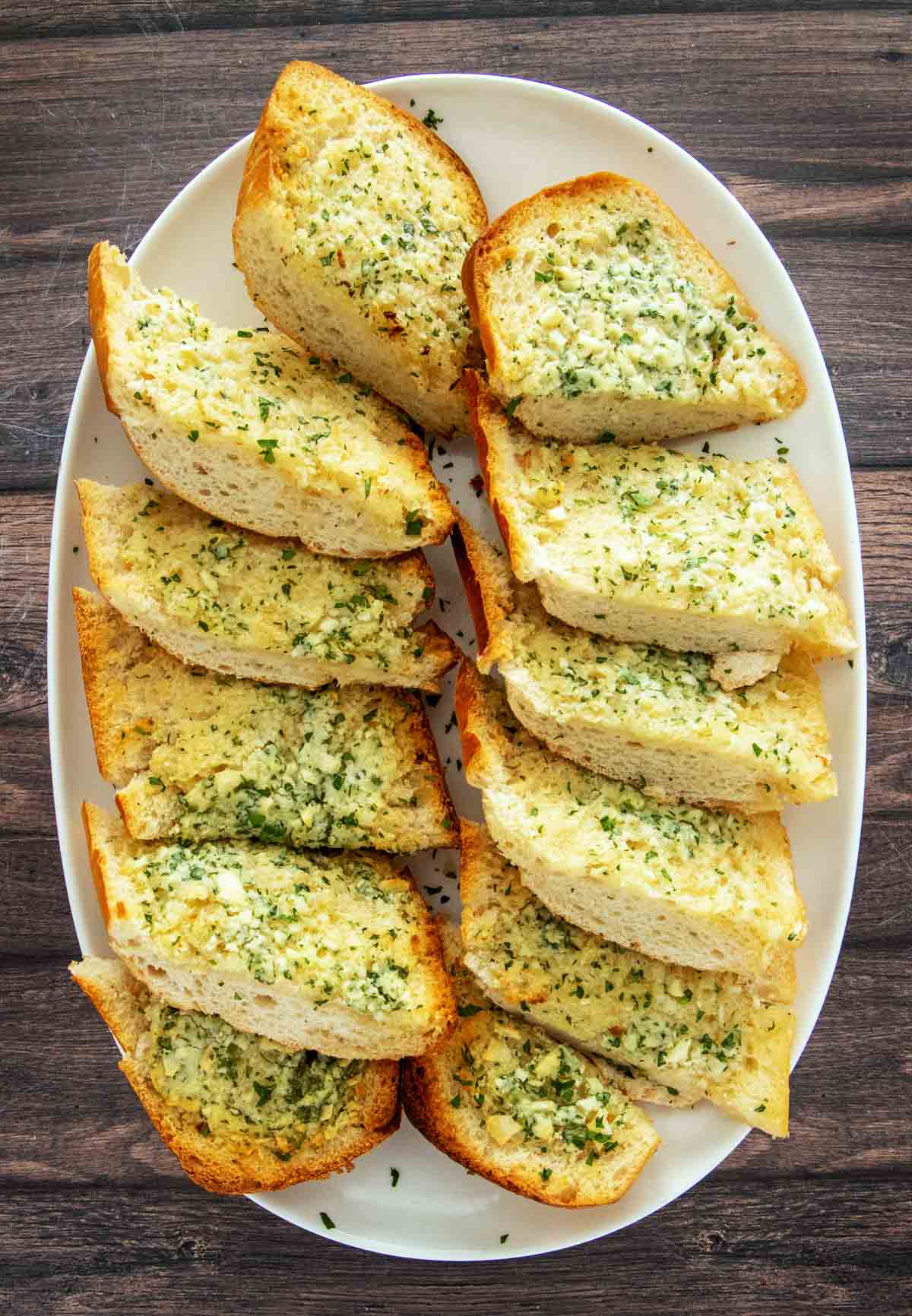 This easy garlic bread recipe is simple to adjust to suit your personal preferences. Sprinkle shredded mozzarella on top for cheesy garlic bread. Add a pinch of red pepper flakes for a little spicy kick. Try roasted garlic for a sweeter, deeper flavor.