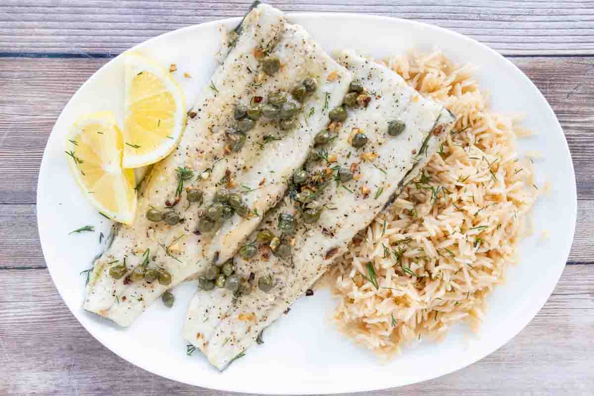 - Use a spoon to top the fish with the butter caper sauce. Serve with rice and your favorite vegetable.