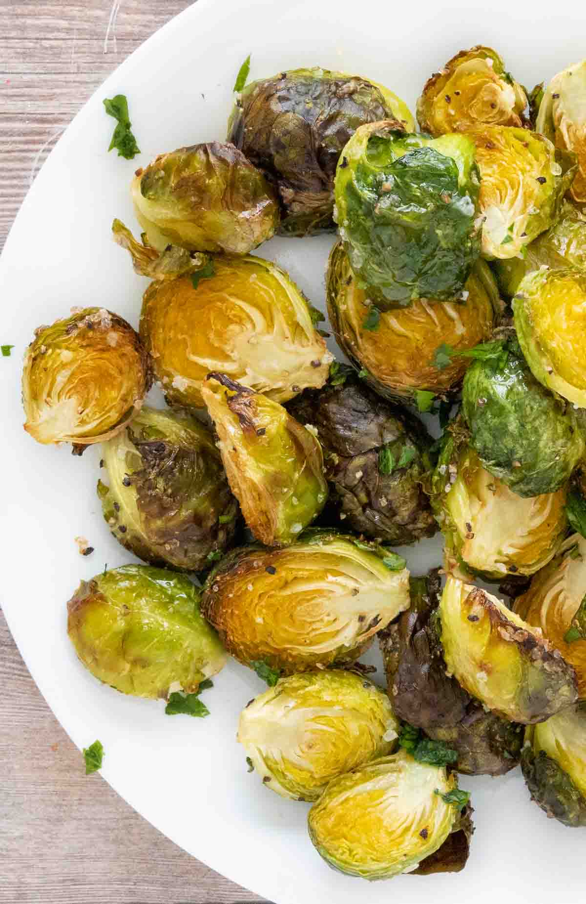 For added flavor, sprinkle a little parmesan cheese over the crispy Brussels sprouts. To change up the flavor, add a squeeze of fresh lemon juice, lemon zest, red pepper flakes, brown sugar, or a balsamic glaze.
