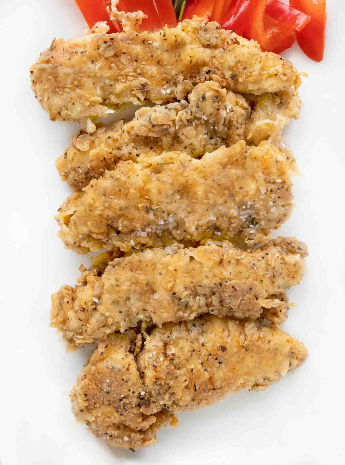 Store any leftover crispy chicken tenders in an airtight container for 3-4 days. They can also be kept frozen in a freezer-safe container for up to two months.